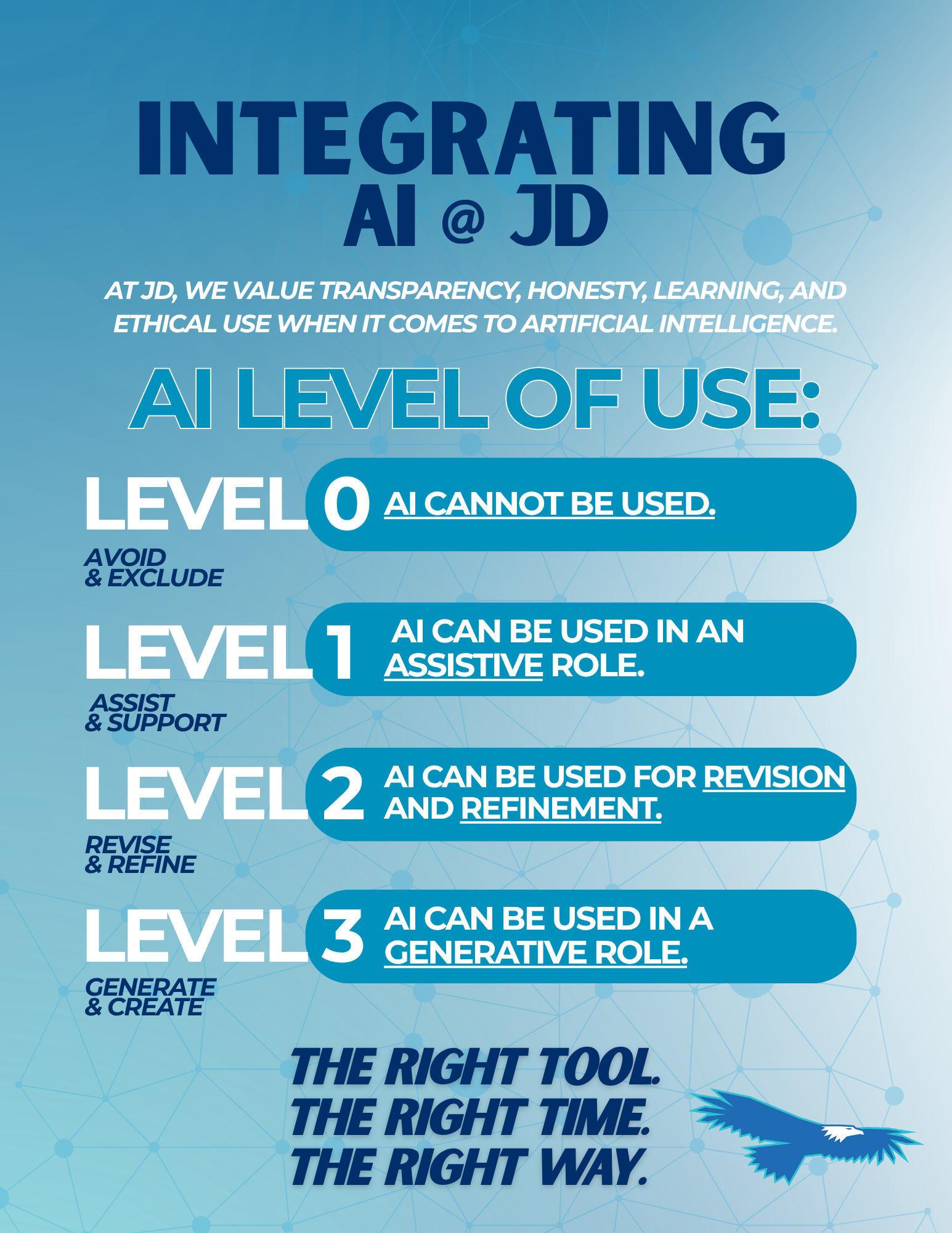 In this process, we believe the values of transparency and honesty, learning, and ethical use are paramount and must align to JD’s mission and Catholic values.